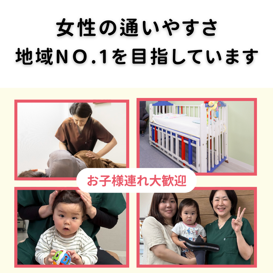 「安心して子どもと一緒に通える整体」として、多くのママに喜ばれています。