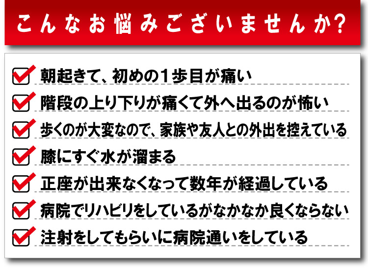 あなたの頭の中にほんの少しでも「膝痛を何とかしたい」というお気持ちがありましたらそのままゆっくりとページを読み進めて下さい。