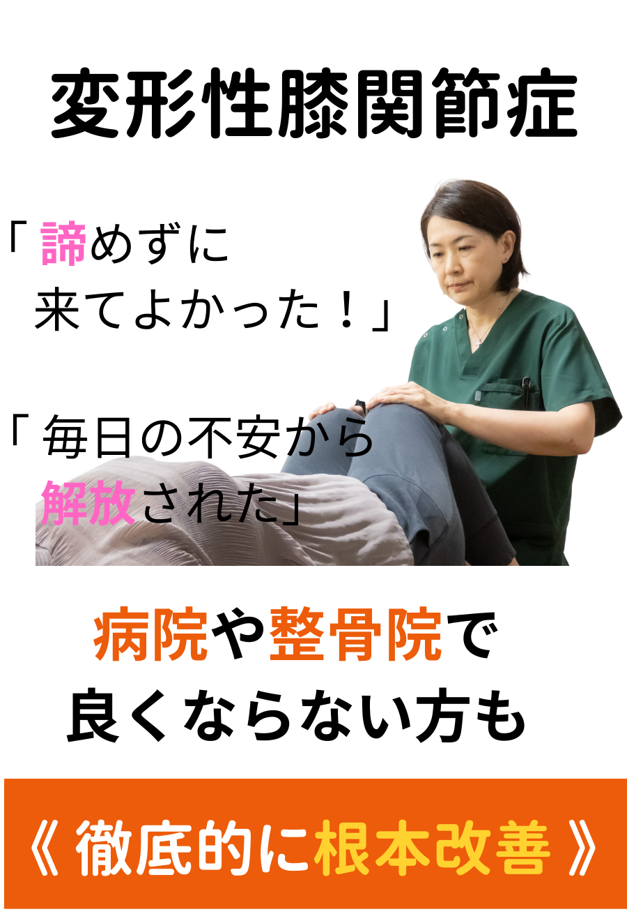 あなたの長年悩んだその膝痛の本当の原因を見抜き根本改善します。