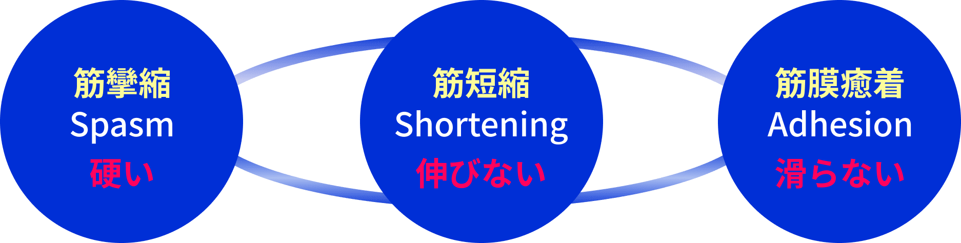 ③ 筋膜癒着→筋肉が滑らない(動かない)状態