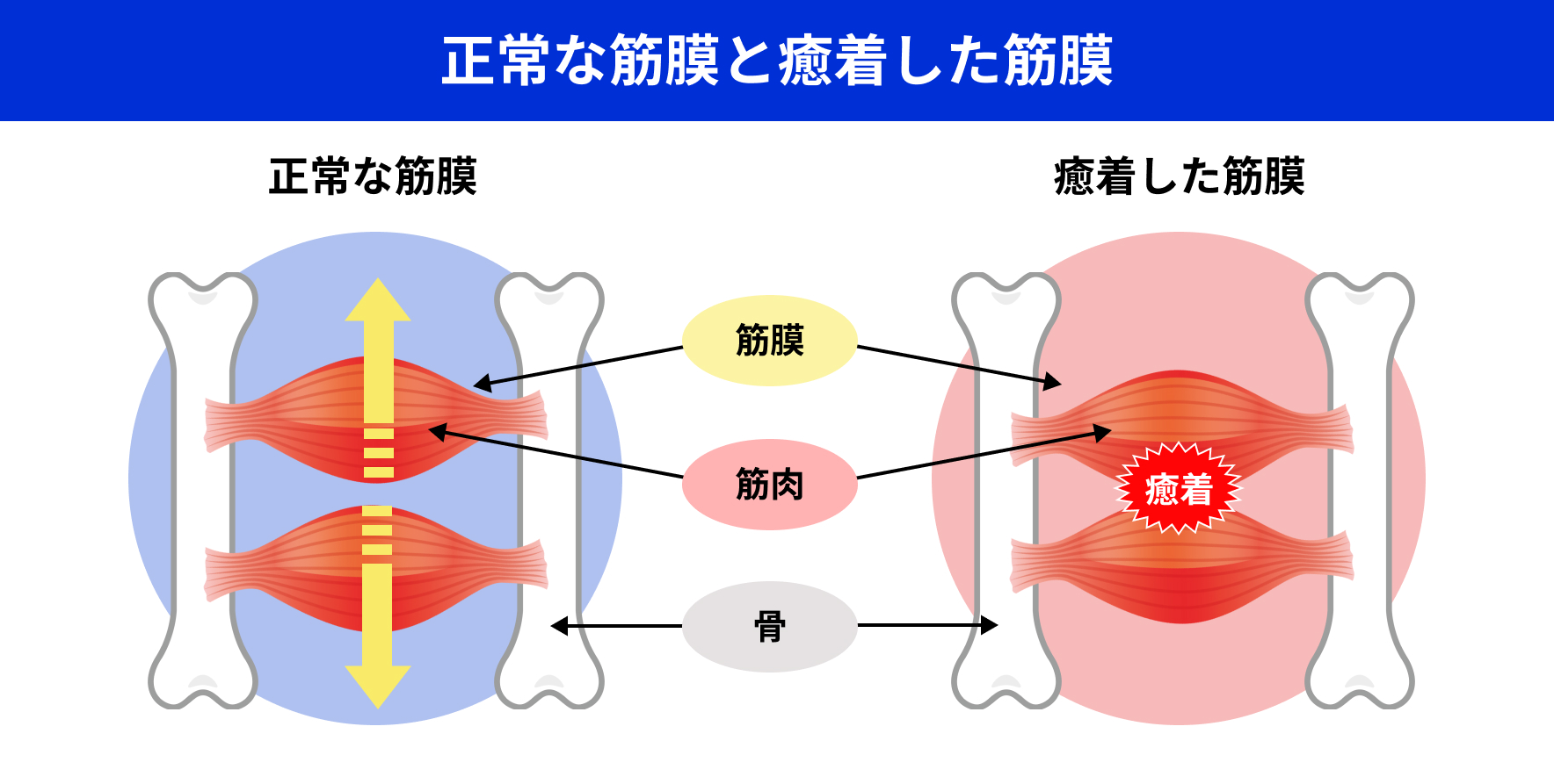 「筋膜癒着」の改善は必須です。